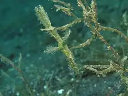 Solenostomus paegnius, the roughsnout ghost pipefish is a species of ghost pipefish from the family Solenostomidae. It is an Indo-Pacific species which occurs from the Red Sea east to Japan and Australia. It occurs over algal/rubble reefs and sandy sea beds, often below depths of 10 metres (33 ft) They are largely pelagic until they settle on the substrate to breed.[1]