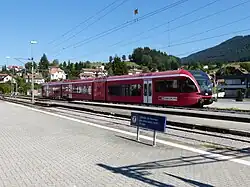 Since the opening of the Grenchenberg Tunnel in 1915 only regional trains have operated on the Sonceboz-Sombeval–Moutier line. Today one Regio service runs each hour from Biel via Sonceboz to Moutier and continues on the Solothurn–Moutier railway to Solothurn.[2] This train is split or joined in Sonceboz-Sombeval, with the other part of the train going on to La Chaux-de-Fonds. The SBB took over 13 GTW sets from the BLS for the service in 2014.[3]