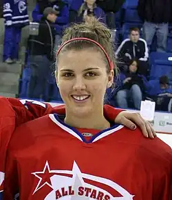 After the CWHL folded, she signed with Brynäs in Sweden[6][7] In her first season, the team reached the SDHL playoffs, losing to Modo in the first round.[8][9] and retired from hockey in 2019.