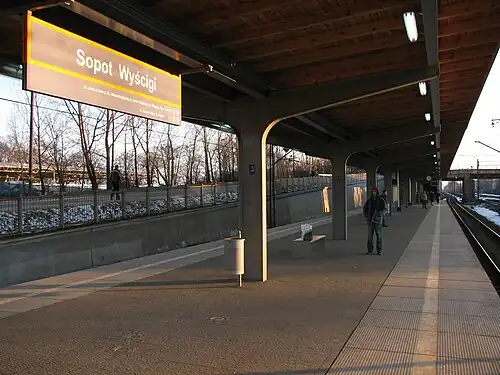 Sopot Wyścigi railway station is a railway station serving the city of Sopot, in the Pomeranian Voivodeship, Poland. The station opened in 1975 and is located on the Gdańsk Śródmieście–Rumia railway. The train services are operated by SKM Tricity.