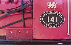 The modifications were similar in scope to that of the Red Devil, although not as extensive. Like the Class 26, no. 141 was also painted red and nicknamed the Red Dragon. Welsh Dragon emblems were later mounted on the cab sides and bunker ends.[1]