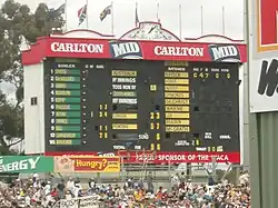 The scoreboard at lunch on day one