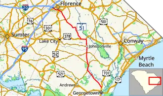 - ^ "Overview map of SC 51 (Georgetown–Florence segment)" (Map). Google Maps. Retrieved August 29, 2014.