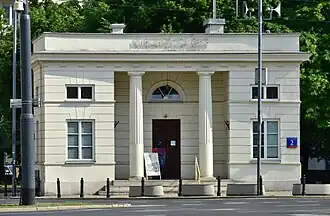 In 1918, it was decided to adapt the abandoned building of the all-female high school, located at Wiejska Street, to house the Legislative Seym of the Poland.[81] Following the renovations, on 10 February 1919, took place the first meeting of the Legislative Seym in the building.[82] In 1922, the nearby abandoned lazaret building, was adopted to house the Senate of Poland.[83] Between 1925 and 1935, the complex had been furtherly expanded forming the Seym and Senate Complex.[82][84]