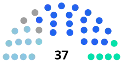 Since the last boundary changes in 2007 the council has comprised 37 councillors representing 18 wards, with each ward electing one, two or three councillors. Elections are held every four years.[23]