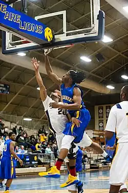 The Muleriders men's basketball team in action against the Texas A&M–Commerce Lions in 2013