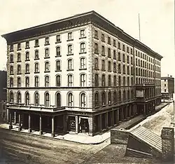 The Southern Hotel was a historic hotel located at the corner of 4th Street and Walnut Street and stretching between 4th and 5th Streets in St. Louis, Missouri. The building was built at the location of the Old Southern Hotel which burned in 1877.[1] This 1877 hotel fire and the loss of life that occurred here made this the worst hotel disaster in St. Louis history.[2] The new Southern Hotel had white marble, extensive fresco work, a rotunda, and a wide promenade. The hotel was owned by Robert G. Campbell who had a close friendship with President Grant.