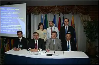 The First Meeting of Signatories took place in Asunción, Paraguay, 15 December 2010, with funding and logistical support from Asociación Guyra Paraguay, the national Partner of BirdLife International.[3] During the meeting an Action Plan was adopted and annexed to the MoU. Furthermore, the meeting approved a list of priority activities as recommended by the Technical Meeting. At the meeting a joint offer by BirdLife International and Guyra Paraguay to provide coordination services for the MoU in the future, was accepted.