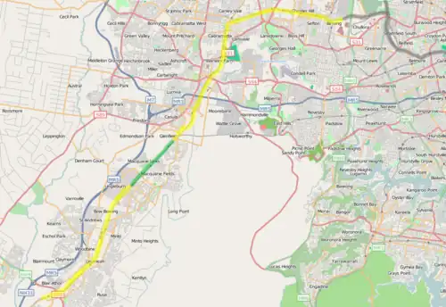 The SSFL runs from Chullora to Macarthur. It is an unelectrified, bi-directional single track with 1,800 metre long passing loops at Leightonfield and Glenfield.[1] Apart from its end points, the SSFL has no interface with the Transport Asset Holding Entity network.