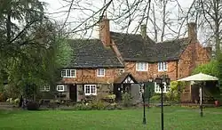 Two of the 100 listed buildings and structures in the Borough of Crawley are in Southgate.[71] Goffs Manor, in Goffs Park, is a Grade II-listed 16th-century farmhouse which is now a restaurant and pub. Before its conversion, actor Peter Vaughan owned and lived in it.[72] The building is timber-framed, as many Crawley houses of the time were, although little of this is now visible. The upper floor is hung with red tiles. The roof is made of slabs of Horsham Stone. An original open fireplace remains inside.[73] The signal box next to the level crossing on Crawley High Street, another Grade II-listed building, is just on the Southgate side of the railway line. It was built in about 1860 and has a hipped roof.[74]