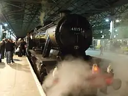 LMS 8F 2-8-0 no 48151 at Southport's Chapel Street station after working "The Roses Express" on Wed 4th April 2012.