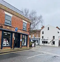 The town was late in getting a permanent theatre. This was in the yard of the former Cross Keys. In 1816 two large rooms on the first floor of premises of James Adams, a whitesmith, were converted for use as a theatre. The first company to use it was that of Joseph Smedley.[27]