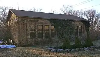 The Southwood Two-Teacher Schoolhouse is a historic school building located on Barker Hill Road just south of East Seneca Turnpike, in the Southwood neighborhood of the town of Onondaga, New York. Further east along the turnpike is the hamlet of Jamesville, New York. The two-teacher school was built in 1937–1938, and is a one-story, yellow brick Art Deco style building, but the ivy hides any architectural details that would show that. The rectangular building has a full concrete block basement and is topped by a flat roof. It remained in use as a school until 1966.[2]: 5, 8