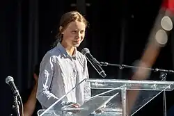 Greta Thunberg giving a speech in Berlin (July 2019)