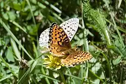Speyeria mormonia, commonly known as the Mormon fritillary, is a North American butterfly belonging to the family Nymphalidae. It is highly diverse, having differentiated into several subspecies which occupy a wide geographic range. S. mormonia exhibits extreme protandry, which is the emergence of male adults before female adults. This has several consequences on male and female behavior.[2] Habitat specificity is still being investigated, as there are few known environmental predictors, and S. mormonia appears to be associated with a wide range of habitats. This species is not under threat, and conservation efforts are generally not necessary.[3][4]