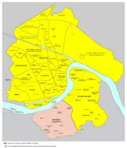 Map of the urban area of Novi Sad with city quarters, showing the location of Sremska Kamenica