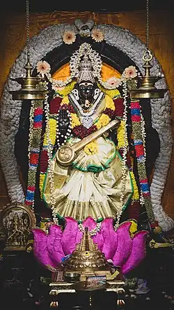 Every Friday evening between 100 and 150 people attend the Pooja, and on other weekdays 10 to 20 attend. Six services per day are held. Usually in July a ten-day temple festival, dedicated to the Hindu Goddess Durga, is celebrated, having about 4,000 visitors.[3][4]