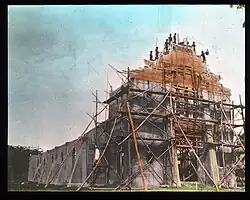 The foundation stone was laid in 1934.[17] The cathedral contains 20,000 tons of material, all of which was carried up the 220ft plateau by Papuan volunteer workers.[18] No workers lost their lives in the construction of the cathedral.[19]