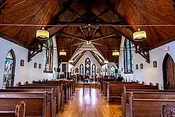 In 1959, the church was partially disassembled and moved to its current location. The church building was condemned by the city and abandoned in 1980. Services were held in a home on the island until 1984 when the church was restored. St. Rita's, the Catholic church on the island, was demolished and the church became used for both Anglican and Catholic services.[2]