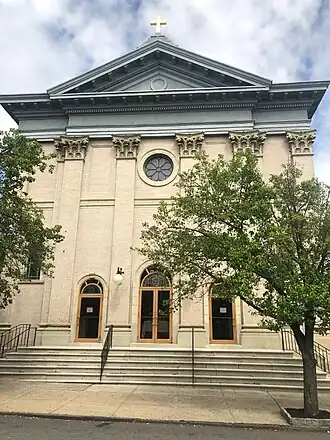 The church building was built 1911. The Italianate church was dedicated by Cardinal John M. Farley, the Archbishop of New York, in November 1911.[1] When opened, it accommodated 700 people.[1][2] A temporary school was opened in 1911, with 200 students, staffed by seven Sisters of Charity of New York.[1] Opposite the church, a convent for the Sisters was opened in January 1913 at a cost of $8,000 (which in 1914 still had a debt of $5,500).[1] Prior to that, the Sisters had to travel daily from their motherhouse in Riverdale. In 1914, the parish numbered around 1,000, and the property was valued at $100,000, with a debt of $59,500.[1]