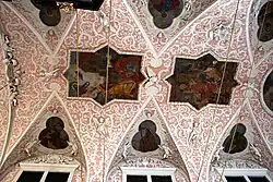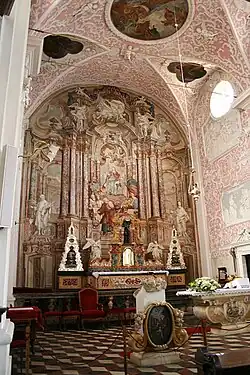Before the St. Catherine's was built, a 14th-century Dominican church occupied the area.[1] When the Jesuits arrived in Zagreb in the early 17th century, they thought the original church too rundown and inadequate, and worked to build a new church. Construction began in 1620 and was completed in 1632.[2] A monastery was built adjacent to the church, but now the spot is home to the Klovićevi dvori art gallery.