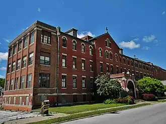 St. Elizabeth Hospital is a historic hospital complex located at Hannibal, Marion County, Missouri. The complex was built in six stages between 1915 and 1973. The original section was built in 1915, and is a three-story with raised basement, Second Renaissance Revival style rectangular red brick building. It features a Palladian style window, large round arched openings on the 1+1⁄2-story brick portico, and limestone highlights. A sun porch wing was added in 1922 and a chapel wing in 1940.[2]: 5
