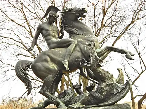 Sculpture of St. George and the Dragon from St. George's Hall, now in Fairmount Park