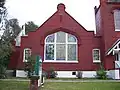 The original church building was replaced in 1913 with a red brick Gothic Revival building designed by local architect Prince W. Spears.