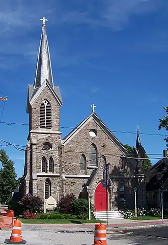 St. Luke's Episcopal Church is a historic Episcopal church complex located at Brockport in Monroe County, New York. The complex consists of an 1855 Gothic Revival-style church of Medina sandstone and 1903 Romanesque style parish hall. The eastern chancel window features a tripartite composition executed in favrile glass by the Tiffany studios of New York. A second grouping of three Tiffany favrile glass windows is located on the western wall of the nave above the narthex.[3]