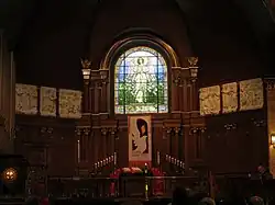 According to its NRHP nomination, the building is significant for its history in religion in Dubuque, for its Richardsonian Romanesque (unique in Dubuque), and for its Tiffany glass.[3]: 15