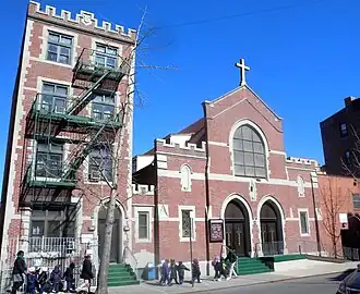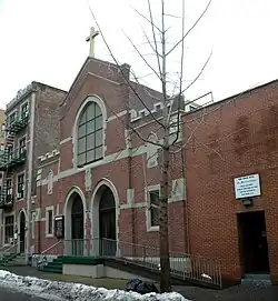 ![]() Principal street-facing facade of church and attached rectory (in 2011) | |