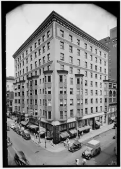 The building was in the Historic American Buildings Survey,[3] but it was demolished in 1973.[4] A supposed fire had led to the hotel's conversion to an office building when the gabled roof and arched entrance were removed and four floors were added[5] with a restaurant added and Turkish bath installed in the basement. The St. Nicholas Hotel was one of four structures in St. Louis by famed architect Louis Sullivan.[6]