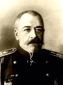 The next day, January 8, a government meeting was held with the highest officials of the state. By this time, all members of the government had become familiar with the text of the "Gapon" petition. Several copies were delivered to the office of the Ministry of the Interior.[42] At the meeting, Justice Minister Muraviev reported on his meeting with Gapon. The minister described Gapon as an ardent revolutionary[43] and a convinced socialist to the point of fanaticism.[44] Muraviev proposed to arrest Gapon and thereby decapitate the nascent movement. Muraviev was supported by Finance Minister V. N. Kokovtsov.[45] Minister of Internal Affairs Svyatopolk-Mirsky and city governor I. A. Fullon weakly objected.[42] At the meeting it was decided to arrest Gapon and to set up barricades of troops to prevent the workers from reaching the tsar's palace. Svyatopolk-Mirsky then went to Tsar Nicholas II in Pushkinsky District and acquainted him with the contents of the petition.[44] In Muraviev's words, the minister called Gapon a "socialist" and reported on the measures taken. Nicholas wrote about it in his diary. According to the tsar's notes, the minister's reports were of a reassuring nature.[42]
