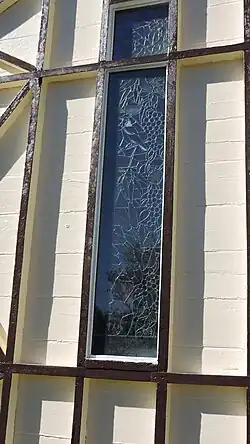 In 1986 stained glass windows were erected behind the altar. More recently a memorial erected by the local historical society in the grounds of the church to gold miner Dan Bray (died 1901) as a tribute to all the goldminers of Leyburn's' early history who lie in unmarked graves in unknown places.[1]