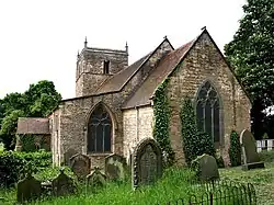 The church had thirteenth- and fourteenth-century additions, in particular its Norman south arcade was extended in this period, and the whole church was heavily restored in 1890–91.[2] Research indicates that the church, which stands very close to a spring (one of a number at the foot of the Jurassic limestone scarp with ritual associations) was constructed on a much older pre-Christian ritual site connected with water cults.[3]