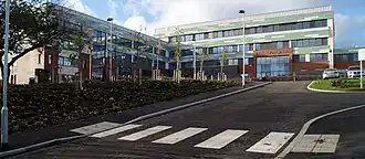 The main teaching block is a refurbished 1960s building which has been extended to provide facilities for wood- and metalwork classes, as well as those for ICT. The campus also includes gymnasia and fitness suites in its PE department. There are football pitches towards the back of the school building, and the building also contains a refurbished library.[4]