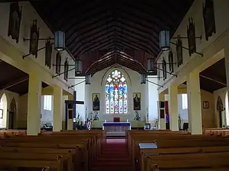 The building was furnished in 1848 with a splendid Gothic interior. The interior has been greatly altered over the years and apart from the beautiful stained glass window behind the sanctuary and the ceiling over the nave, little exists of the original interior.