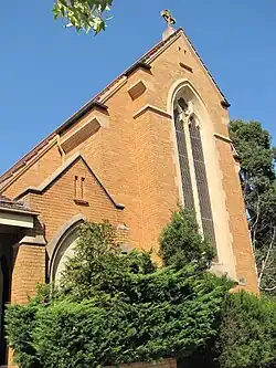 St Hilary's Anglican Church was established in 1888 when the original wooden church building was completed, seating up to 450 people and designed by architect, Albert Purchas.[1][6] By 1905, the wooden church’s debt was paid off, which led to parishioners to ask the Archbishop of Melbourne, Lowther Clarke to consecrate the building.[7] However, this was rejected due to the use of wood instead of stone. The current church building was initially designed in the 1920s, but was delayed due to the Great Depression.[8] It was later designed by Louis Williams and opened in 1939 and finally consecrated in 1943 by Archbishop Joseph Booth.[1][7] St Silas Anglican Church commenced in 1942 with the current church building consecrated in 1962.[9] St Augustine's Anglican Church commenced in 1960 and was consecrated shortly afterwards. Both churches were formed due to ‘church planting’ that originated from St Hilary’s in Kew.[10]