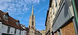 The church and spire seen from the town centre