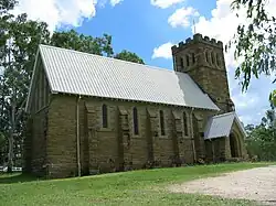 St. John's Church at Mundoolun is a private family chapel built in 1901 on a property settled by the Collins family in the 1840s. The property is located between Canungra and Beaudesert in the Albert River Valley, South East Queensland. The church is constructed of local sandstone to the design of the Brisbane Diocesan Architect John Buckeridge who was commissioned by the Collins family in 1899.[1]