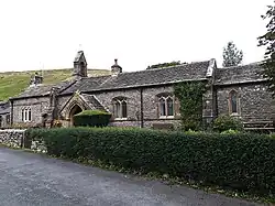 There appears to have been a church in Halton Gill by the late Mediaeval period; it was first recorded in 1577. William Fawcett left money to rebuild the church with an adjacent vicarage, and an endowment for a full-time priest provided that they also teach children during the week. The work was completed in 1626, at which time, it was a chapel of ease to St Oswald's Church, Arncliffe. A gallery was added in the 18th century.[1] In 1848, the church was described as "a neat edifice in the later English style".[2] The church was largely rebuilt in 1848, with only the north and west walls retained, while the vicarage was converted into a schoolroom. A dedicated schoolteacher was employed, and the church was ministered to by the priest from Arncliffe. The building was restored in 1891, with work including new foundations for the north wall, a new roof for the schoolroom, and redecoration of the church.[1] The school closed in 1958, the same year in which the building was grade II listed.[3] The church was redundant by 1979,[4] and the whole building was then converted into a house.[3]
