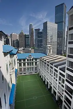 The College is near the central business district of Hong Kong. Its architecture is a combination of typical colonial European (British Imperialist) and modern styles. The Charles Kao Block[8] (Old Building, north block), constructed in 1920, houses most of the classrooms. The Chapel Block (west block) houses the Old Hall, music room, laboratories, lecture room and the school chapel. These buildings were built in a Colonial style reflecting European influences. The two blocks are declared monuments of Hong Kong since August 2000.