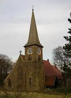 13. ^ The wooden pulpit and stone font would have been designed by the architect Barber, as was his habit. His pulpits and fonts were carved by local sculptors in the Arts and Crafts tradition. The pulpits tended to be made of pitch pine or Caen stone, and the fonts of Caen stone.