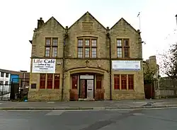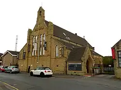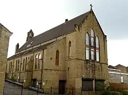 The former St Mark's Church, Old Leeds Road, Huddersfield, was an Anglican parish church in West Yorkshire, England. It was previously known as St Mark's, Leeds Road, before the road name was changed. ("Leeds Road" differentiates this building from St. Mark the Evangelist, Longwood, Huddersfield.) This building was designed in 1886 by William Swinden Barber[1] when the parish of St Peter's was split and a new building was required to accommodate a growing congregation. It was opened in 1887. Among the vicars posted in this benefice were the very popular Canon Percy Holbrook,[2] the notoriously unfortunate Reverend Jonas Pilling who was involved in a standoff with his congregation for many years,[3] the sociable Reverend Robert Alfred Humble who died in mysterious circumstances,[4][5] and the eloquent preacher Reverend Joseph Miller, who had previously been a Congregational minister.[6][7] The building was sold by the Church of England in 2001, and it has been converted into a block of offices.