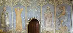 The sanctuary is adorned with a wall painting scheme executed between about 1911 and 1920 by a local artist, Kitty Milroy.[7] Her work is exceptional for a number of reasons: