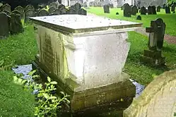 The Hankin Family Tomb in the churchyard, was Grade II listed in 2005.[5] It was made in 1816 of Portland stone and is a "rectangular chest tomb on a moulded base, with a two-part cover consisting of a low hipped top slab and lower moulded cornice."[5] The panels at the sides contain various inscriptions including the one on the south panel which reads: "Sacred to the memory of John Hankin who departed this life January 12th 1816, aged 55 years", and the one on the north side which reads: "Sacred to the memory of Elizabeth, widow of John Hankin, who departed this life September 13th 1831, aged 67 years."[5]