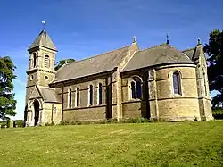 A church was built in Foxholes in the Norman period. It was restored or rebuilt in about 1777.[1] In 1848, it was described as "an ancient structure, consisting of a nave and chancel separated by a fine Norman arch".[2] In 1866, the church was entirely rebuilt by George Fowler Jones, in the Neo-Norman style. It was grade II listed in 1966.[3]