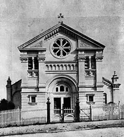 St Mary's Church, South Brisbane, is a late 19th-century rendered brick church designed by Brisbane architects, Simkin and Ibler and constructed by Woollam and Norman in 1892–1893. At the time of its opening on 2 July 1893, construction of the church was not finalised. The proposed tower, transepts and chancel were never built and it was not until 1929 a permanent sanctuary was added to the eastern end of the church to the design of architects Cavanagh and Cavanagh. The former presbytery (now parish house), built at about the same time as the church, was completed by February 1893.[1]