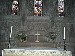 Installed in 1911, in memory of Richard Holt Briscoe of Chillington, the church's sandstone reredos depicts Jesus breaking bread with two disciples.[1][2] It was designed by W.D. Caroë. A similar reredos is said to exist in St Margaret's Church, Westminster, made of metal.[4][6]