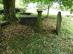 In the churchyard is a buff sandstone sundial dating from the early 19th century. It consists of a bulbous baluster on a circular stone base with a capital of acanthus leaves which carries the original circular plate with italic Roman numerals. It is listed at Grade II.[ 6] The churchyard also contains the war graves of a soldier of World War I , and a soldier and Royal Air Force officer of World War II .[ 7]